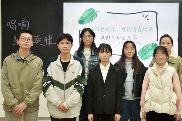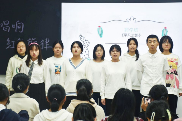 比赛在主持人的开场下拉开帷幕,各班参赛人员按顺序出场表演。其中,检验班演唱了《少年中国说》,歌曲中,热血激昂的歌声配以少年们铿锵有力的呐喊,与百年前的梁启超隔空对话,极力歌颂少年的朝气蓬勃,也唱出了当代中国少年发奋图强的精神风骨。临床二班演唱了《奔跑》,歌曲激昂的旋律与激情的演绎拔动了无数人的心弦,给人一种向前奋进的勇气和冲动,展现了少年不惧艰险,执着追梦的青春风采。最后,由主持人宣布各班比赛得分并颁发奖状,获奖班级进行合影留念。