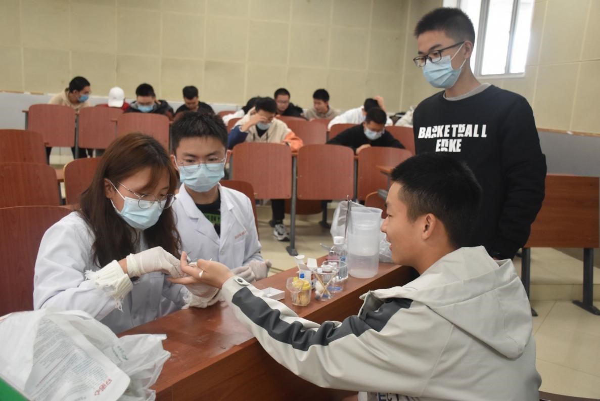 讲座开始,吴磊对讲座内容做简单引入并简要介绍讲座安排及目的。朱鑫带领学员探究血糖奥秘。他解释了血糖的含义及基本来源紧接着介绍了高血糖、低血糖及糖尿病三个有关血糖病症并给予对应解决措施。他也围绕测量血糖的六个步骤进行讲解。随后,罗牡群以血型为主题通过血型的历史依次传授了A、B、AB、O及RH阴性血的特征及鉴定方法和血型测定方法。另外,周凯为同学们普及血压相关知识。他提到了血压的基本定义以及测量血压的操作仪器,呼吁人们定期进行血压测量并给高血压患者提出了几条建议。讲座过程中,三位主讲人分别为同学们展示了血糖测量,血型鉴定及血压测量的实际操作并加以讲解。最后,吴磊对此次活动做出小结,表示了对主讲人的感谢并对同学们提出锻炼好身体的期盼。