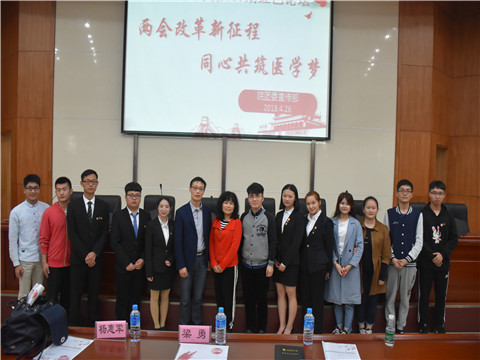 4月26日中午,院团委在仁医楼学术报告厅举办主题为“两会改革新征程,同心共筑医学梦”的第357期红色论坛。院党委书记梁勇发表讲话。院团委书记李强、医学免疫学教研室杨惠军老师以及兄弟学院代表参加了本次红色论坛活动。